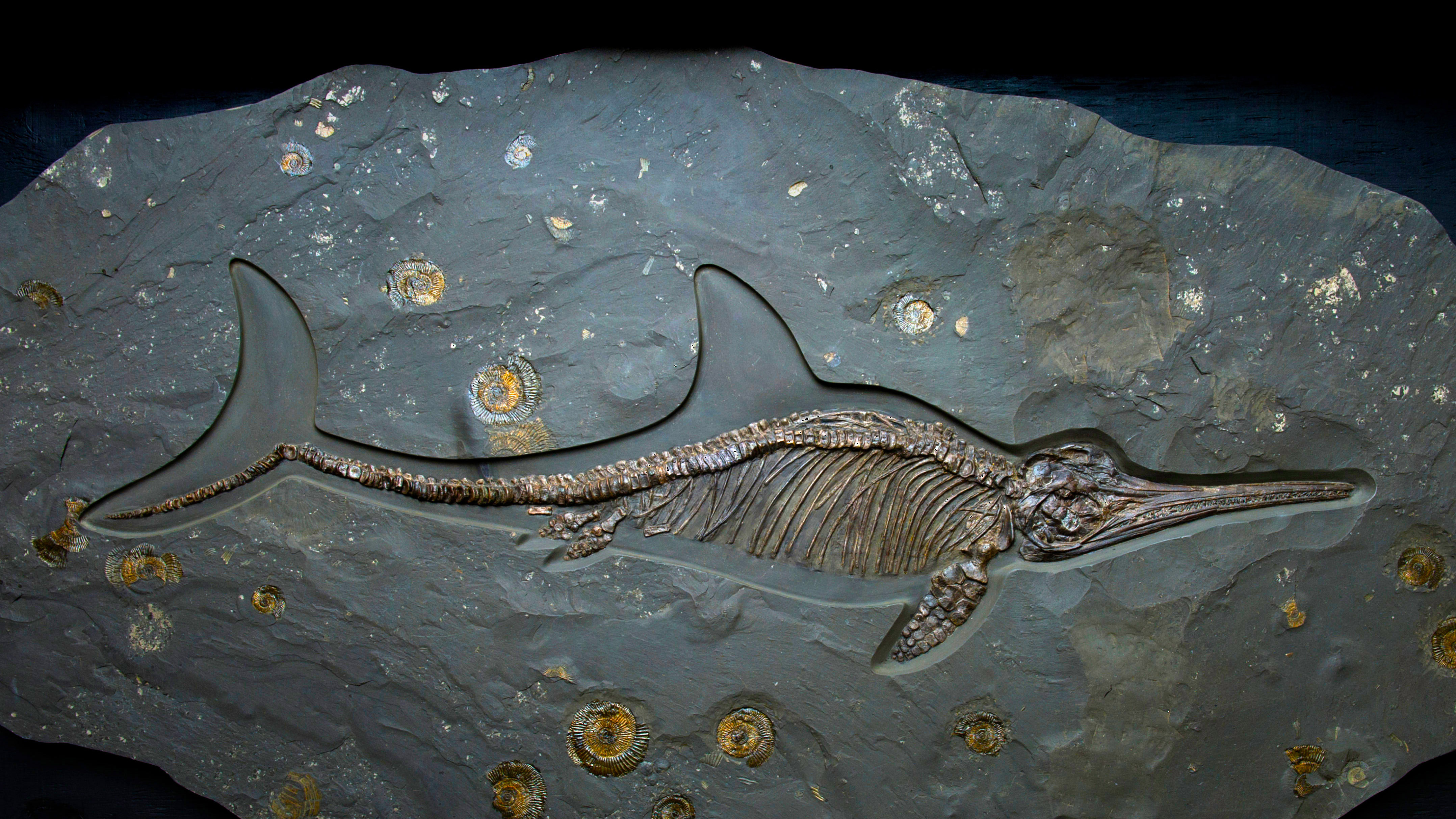 An ichthyosaur fossil of the Jurassic period