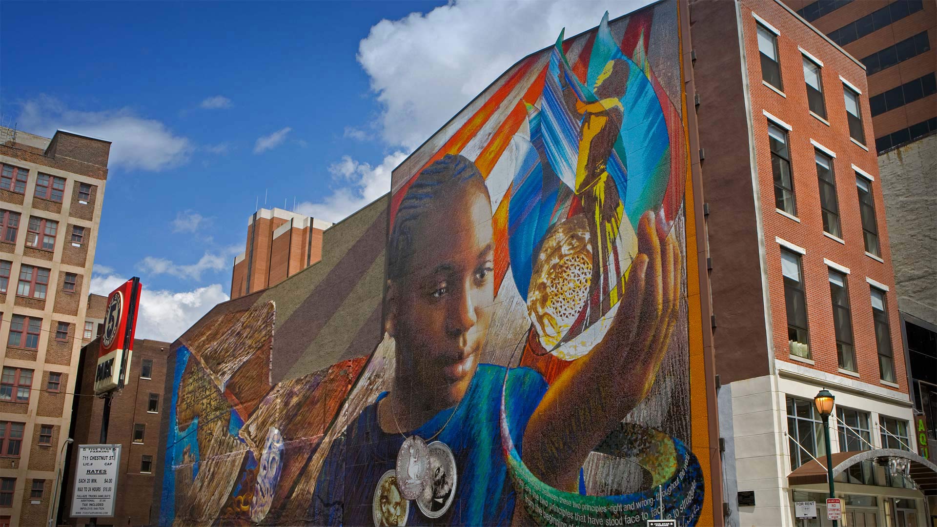 'Legacy' mural painted by Josh Sarantitis and Eric Okdeh within the Mural Arts Program in Philadelphia