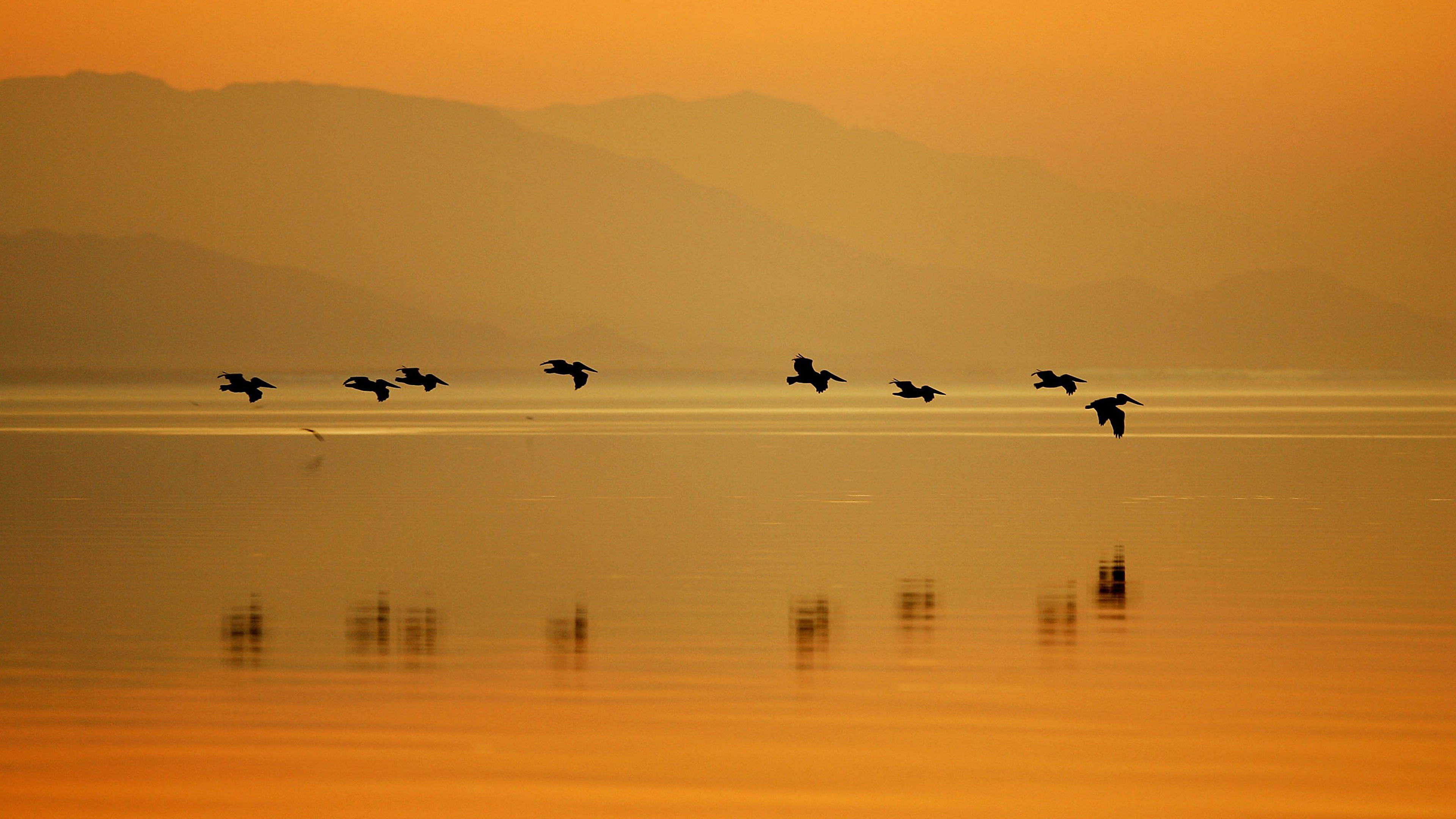 Pelicans at Sonny Bono Salton Sea National Wildlife Refuge, 加利福尼亚州 (© David McNew/盖蒂图片社)