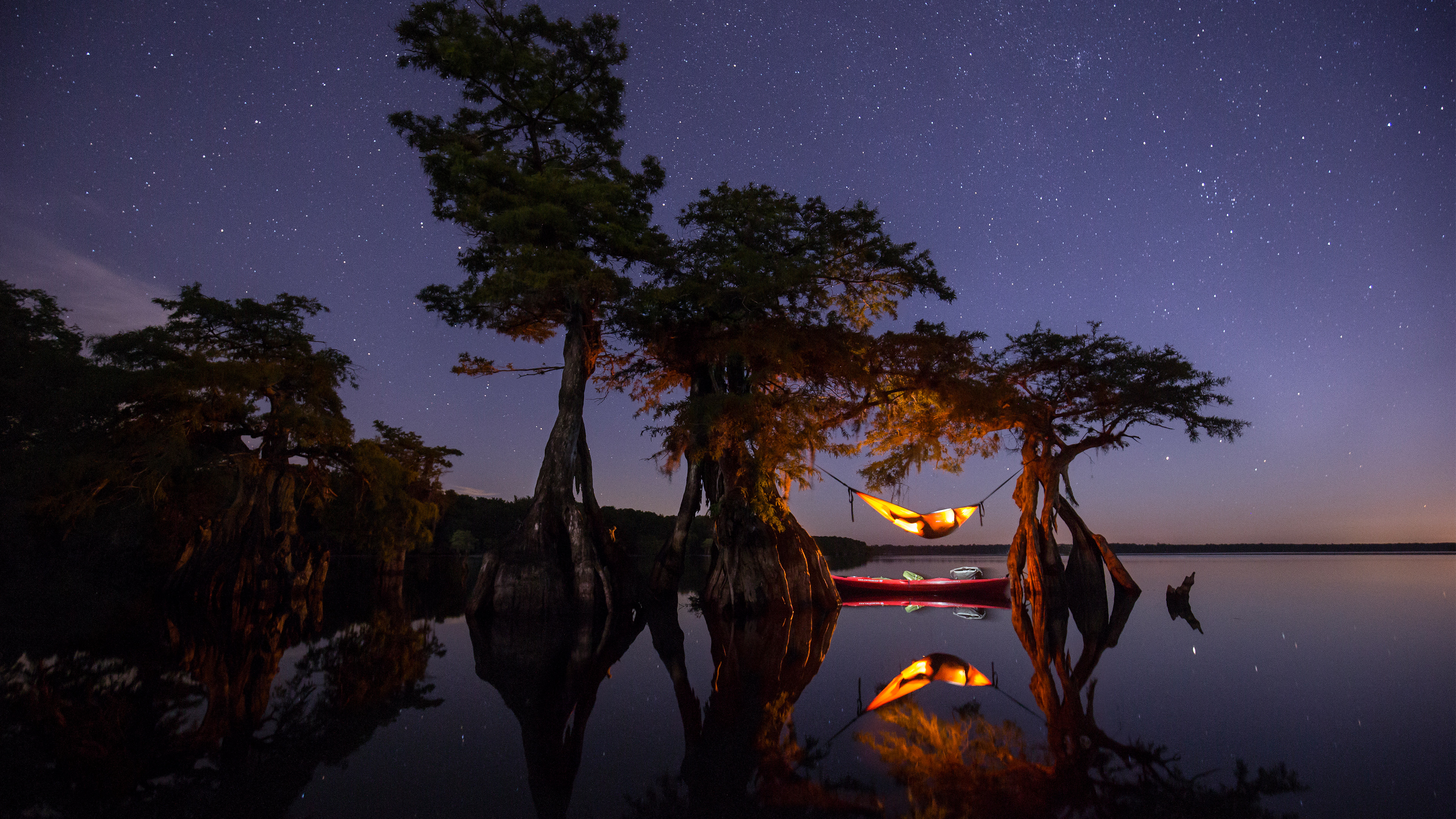 Hammock camping on a lake in Central Florida (© Mac Stone/Tandem Stills + Motion)