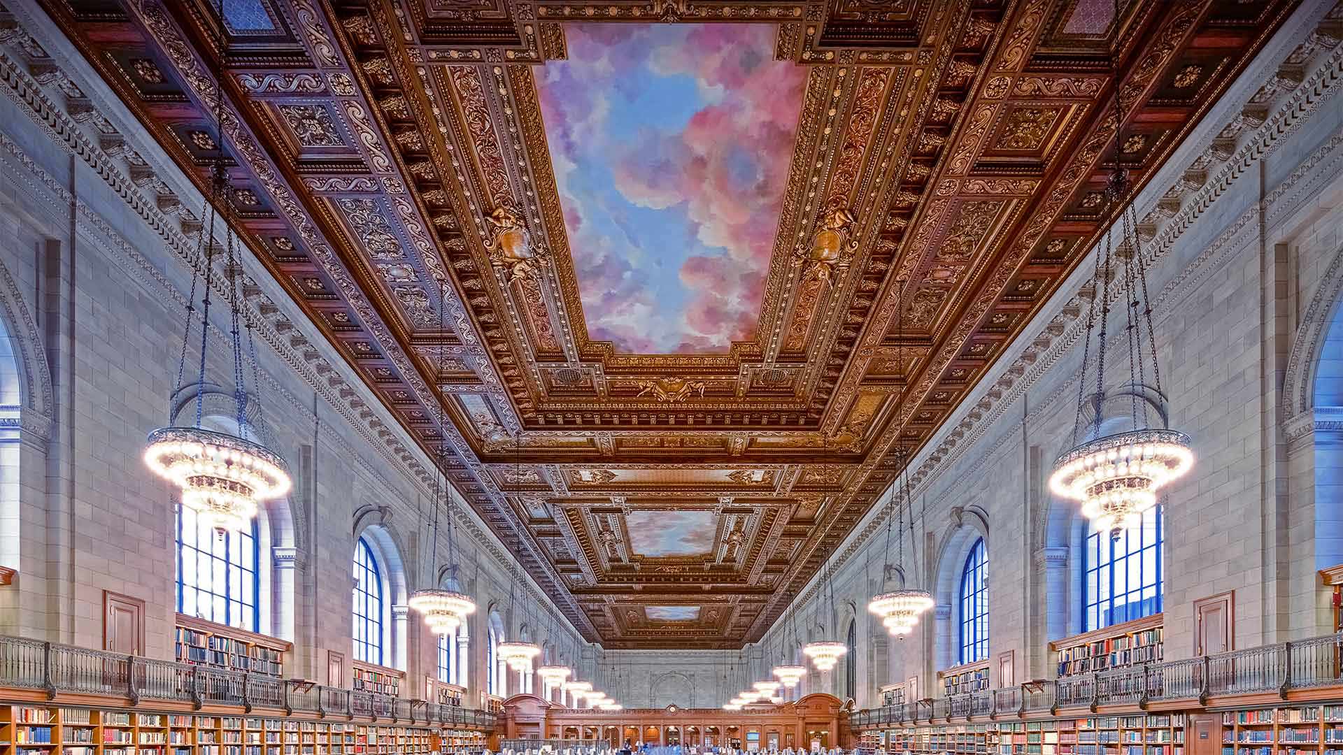 The renovated Rose Main 雷丁 Room, 纽约州 Public Library Main Branch, 纽约市 (© Sascha Kilmer/盖蒂图片社)