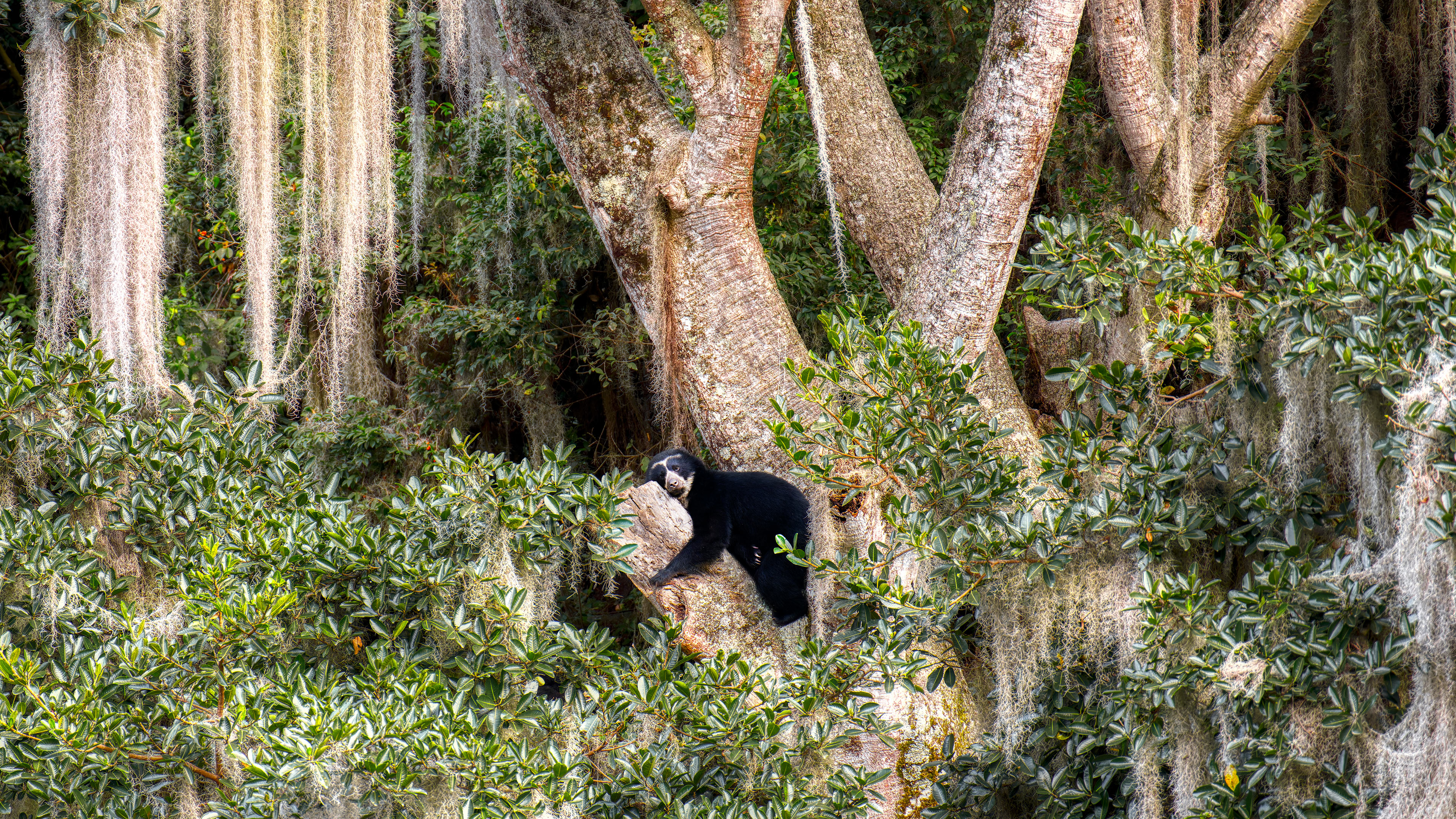 Spectacled bear resting in tree, Ecuador (© Andy Rouse/Nature Picture Library)